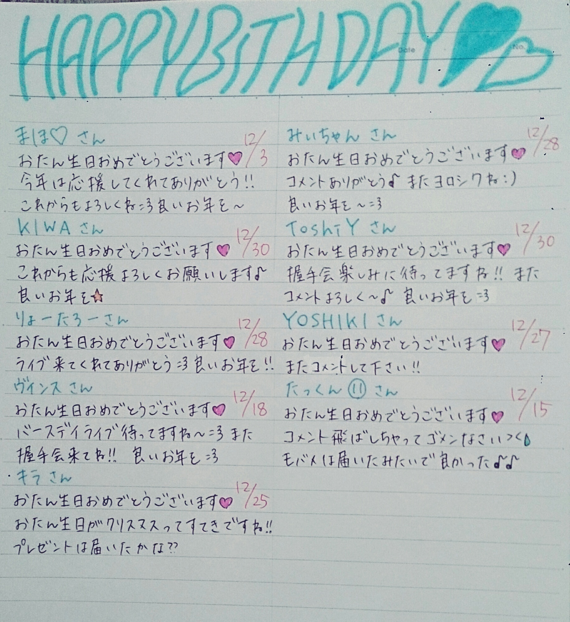 お誕生日の方にメッセージ(´,,•ω•,,)♡